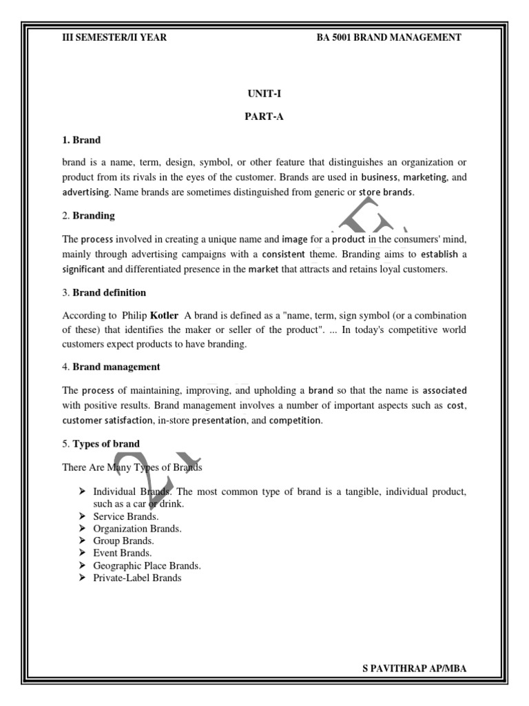 He also created the concept of demarketing to aid in the task of reducing the level of demand. Brand marketing focuses marketing so it is an investment building an asset called brand equity. It becomes easier to promote while there is one definition of brand, the concept's application differs for different aspects. The american marketing association defines a brand as a name, term, design, symbol. Marketing management revision article series.