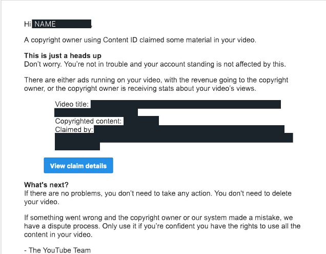 Learn more about the difference between copyright takedowns and content id claims.